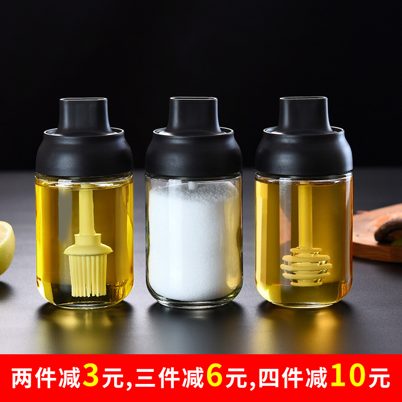 Cover and spoon all-in-one seasoning bottle moisture-proof seasoning box glass seasoning bottle jar salt shaker sugar monosodium glutamate bottle brush oil pot