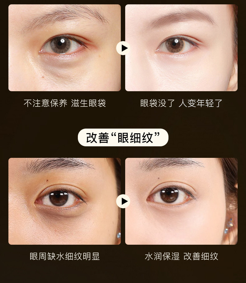 Moisturizing, dark circles, eye bags, fat particles, dry lines