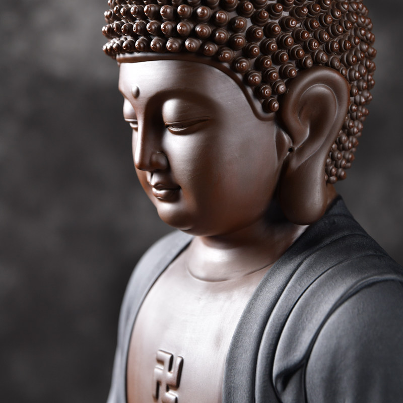 Ink dyed fragrance Sakyamuni Buddha big day Rulai Buddha ceramic Buddha statue decoration household offering handicraft decoration