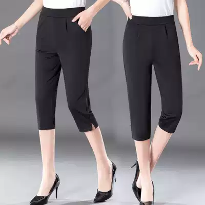 2021 new middle-aged mother pants summer thin slim body slim elderly grandma pants high waist Capri pants stretch