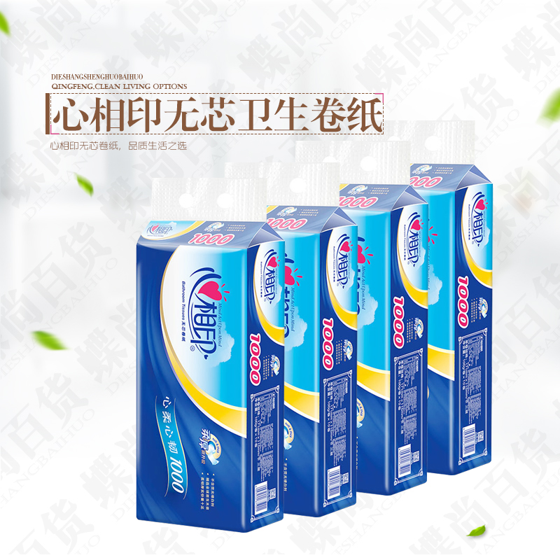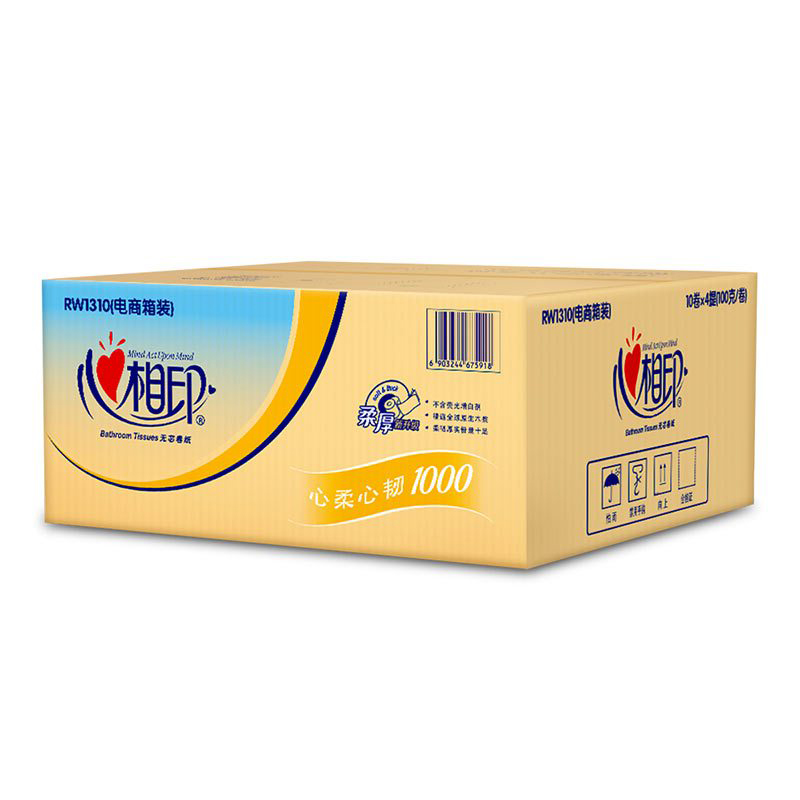 Xinjiang heart printing heart soft core household roll 100 grams 40 rolls 4 toilet paper toilet paper whole box