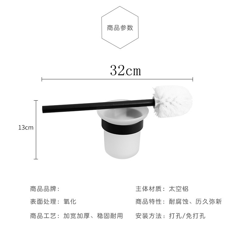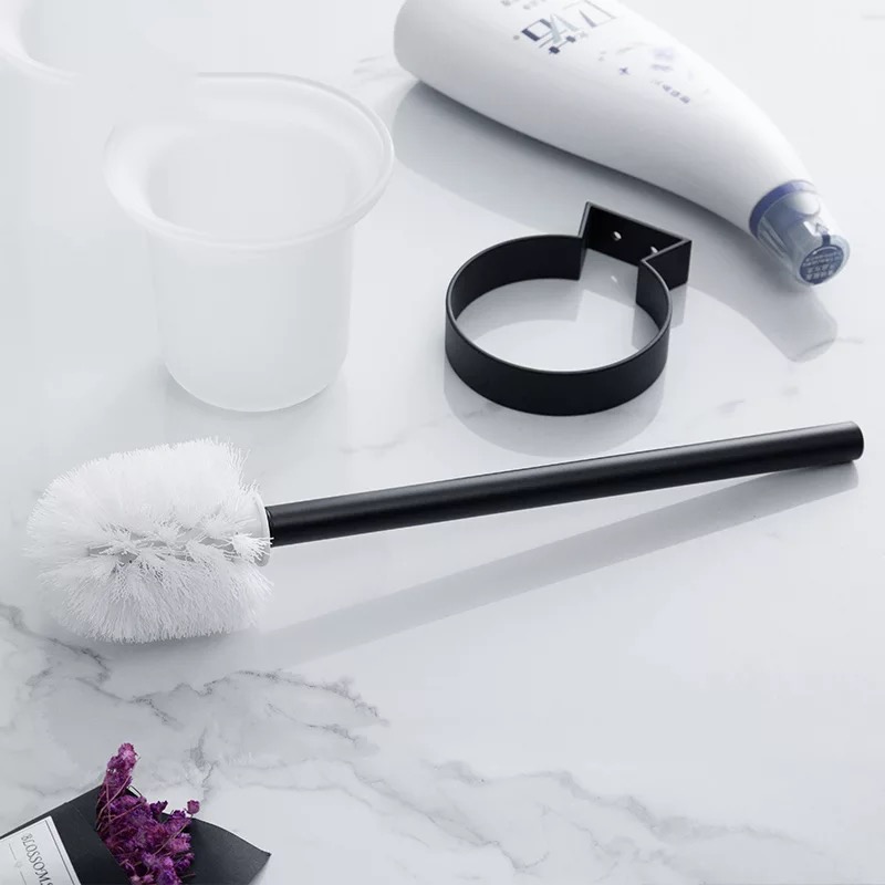 Black Toilet Brush Suit Free Of Punch American Minimalist Wind Cleaning Brush Seat Poo Brush Detachable Replacement Space Aluminum