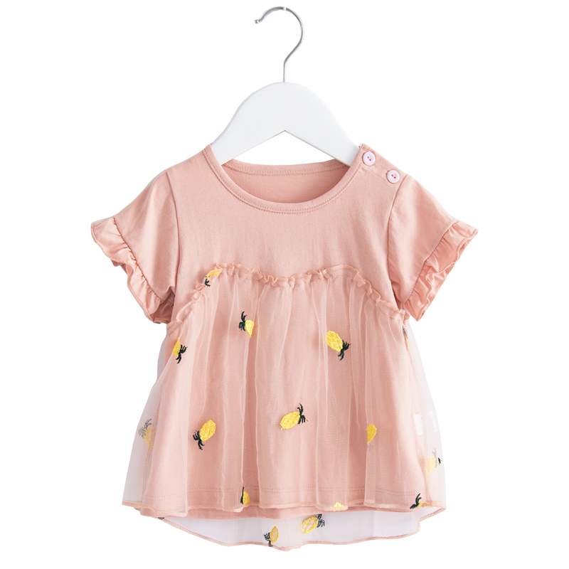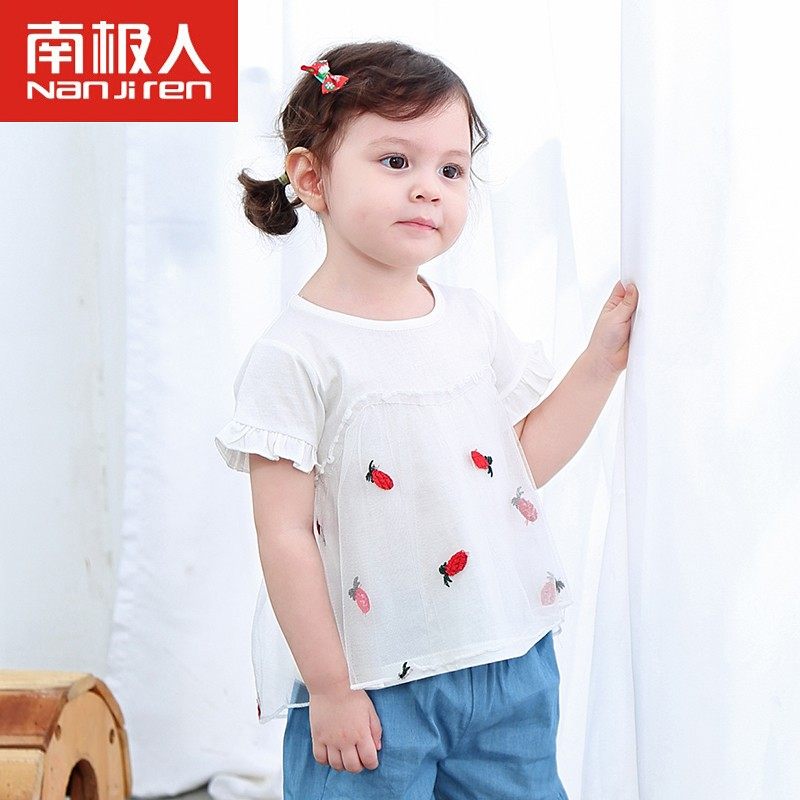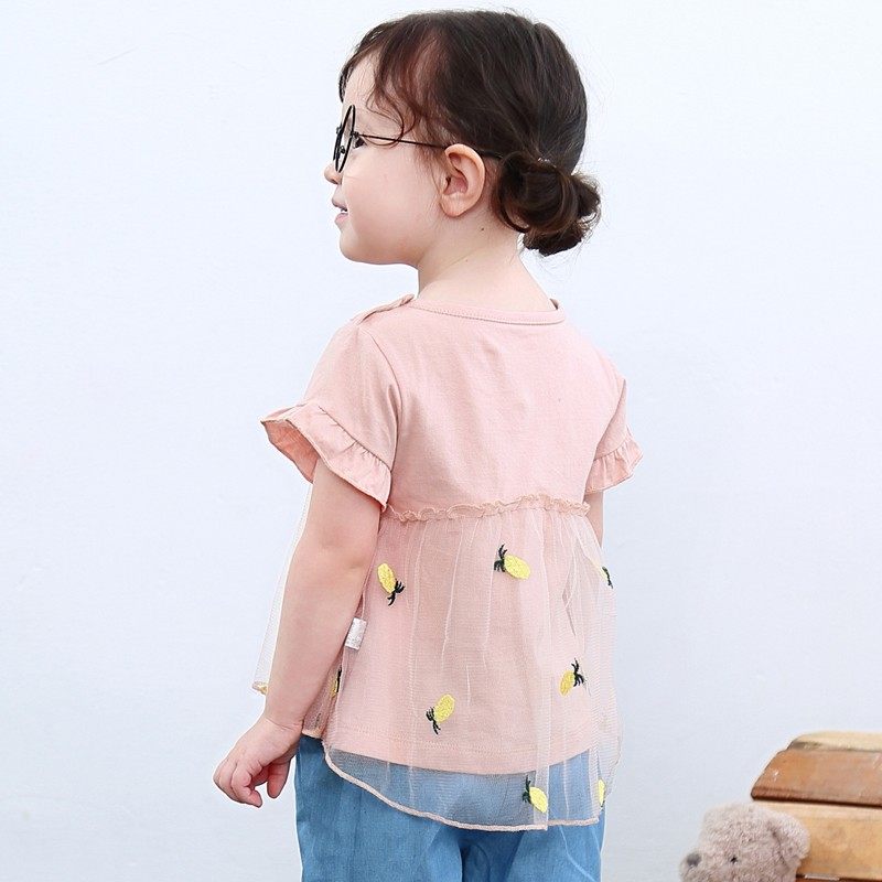 Baby short-sleeved T-shirt pure cotton top Korean version of mesh summer dress baby children's bottoming shirt summer half-sleeved girl trend
