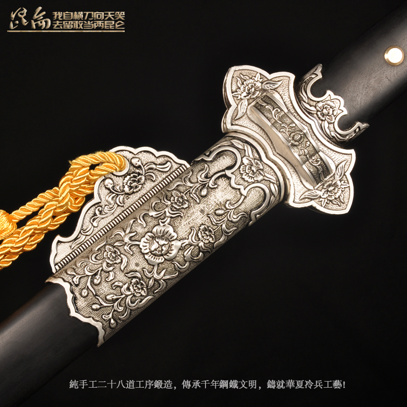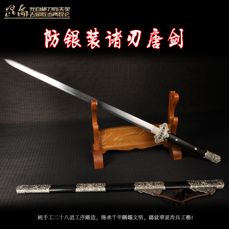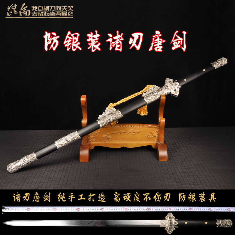 Longquan City Villa Residence Treasure Sword Defense Silver Clothing Luxury Tang Sword Flower Pattern Steel Long Sword Han Sword Unopened Blade