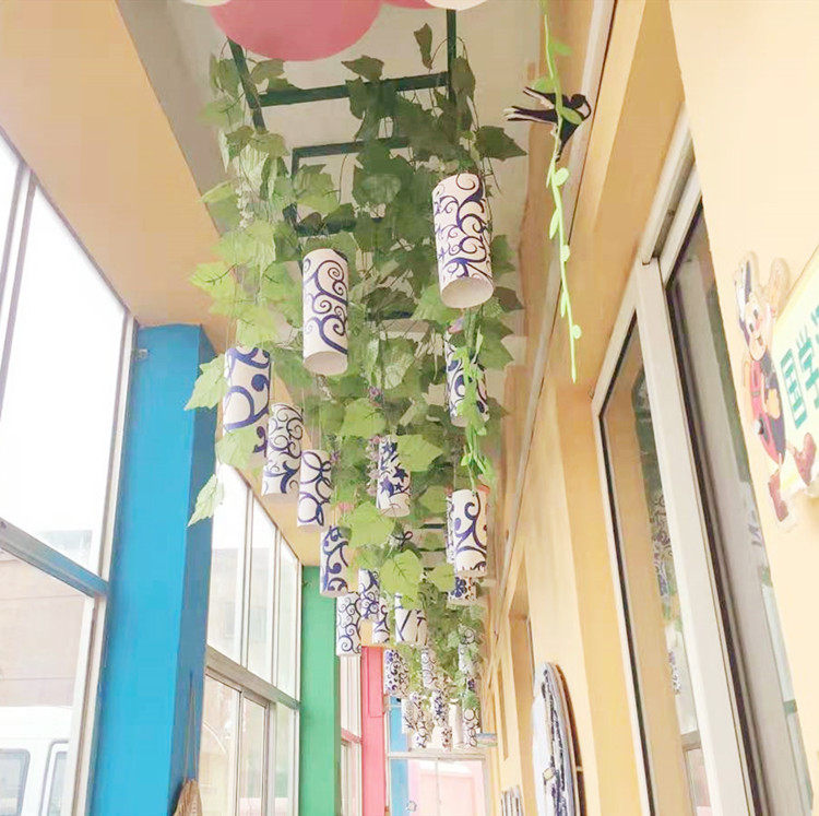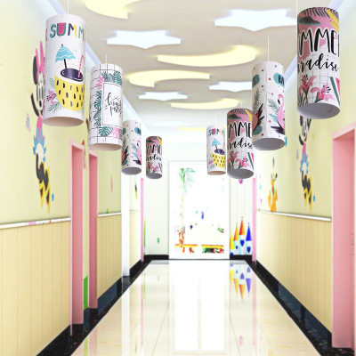 Kindergarten Decoration Classroom Corridor Aisle Environment Arrangement Creative Green Flowers Porcelain Cartoon Paper Cylinder Air Hanging Accessories Hang Accessories