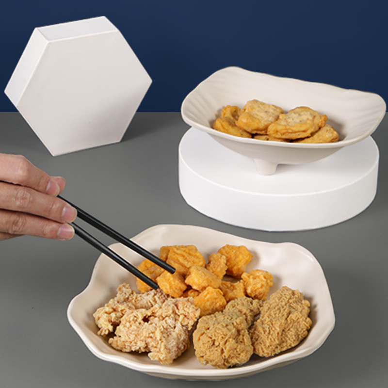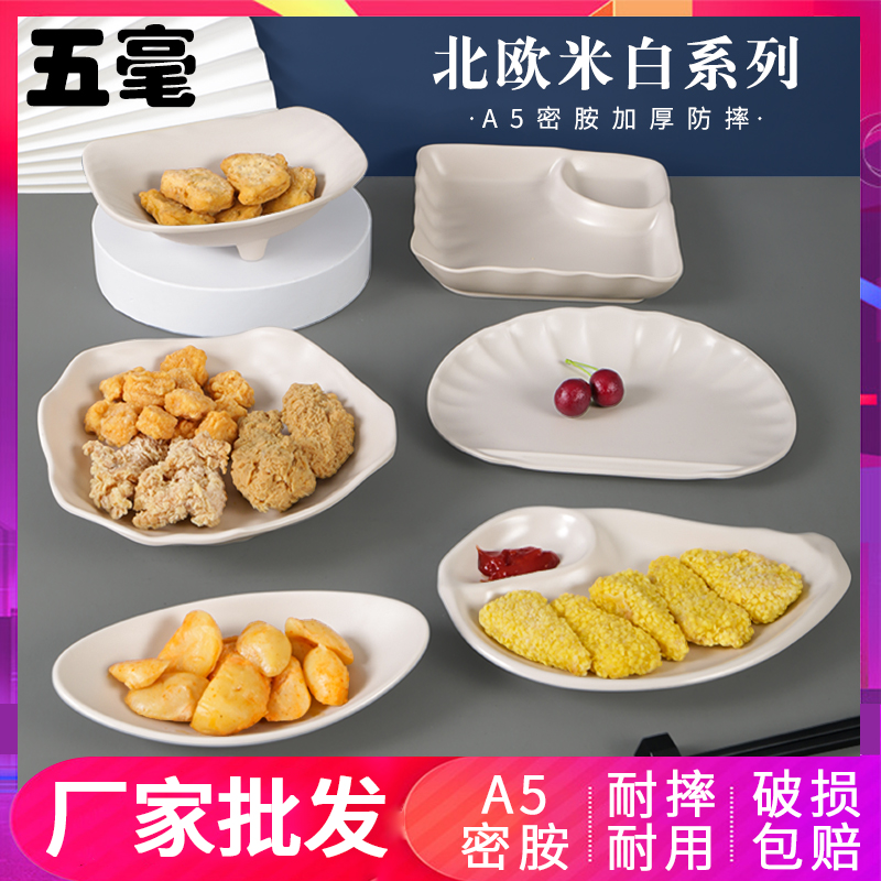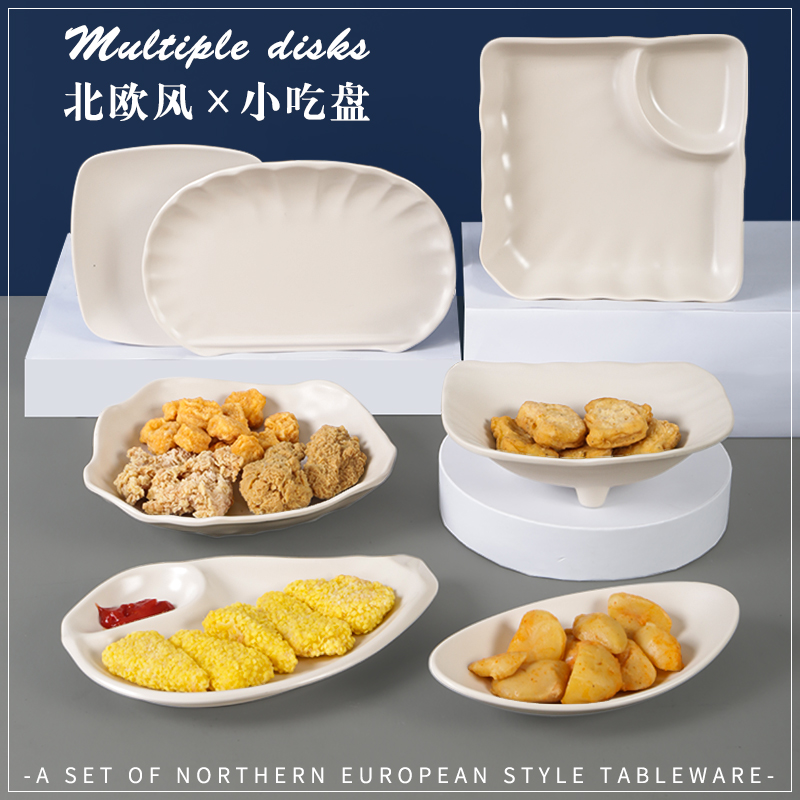 Nordic Windy Beige Milky Milk Tea Shop Creative Plate Small Pan Dish Snack Dish Plastic Fries Tray Profiled Cool Dish