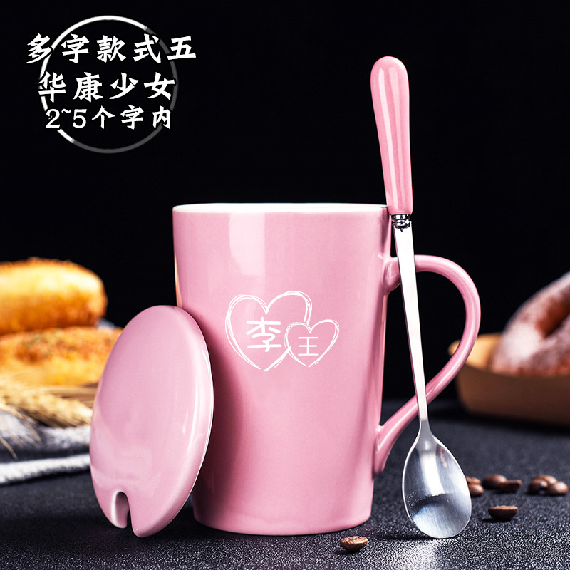 Creative Girl Taiwan Cup Ceramic Cup with Couple Spoon Couple Breakfast Coffee Cup Household Cup Cup