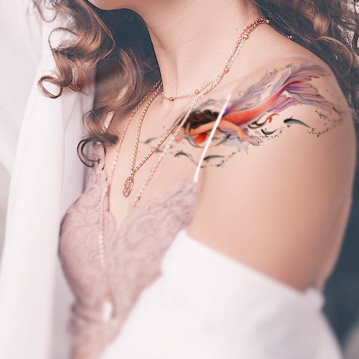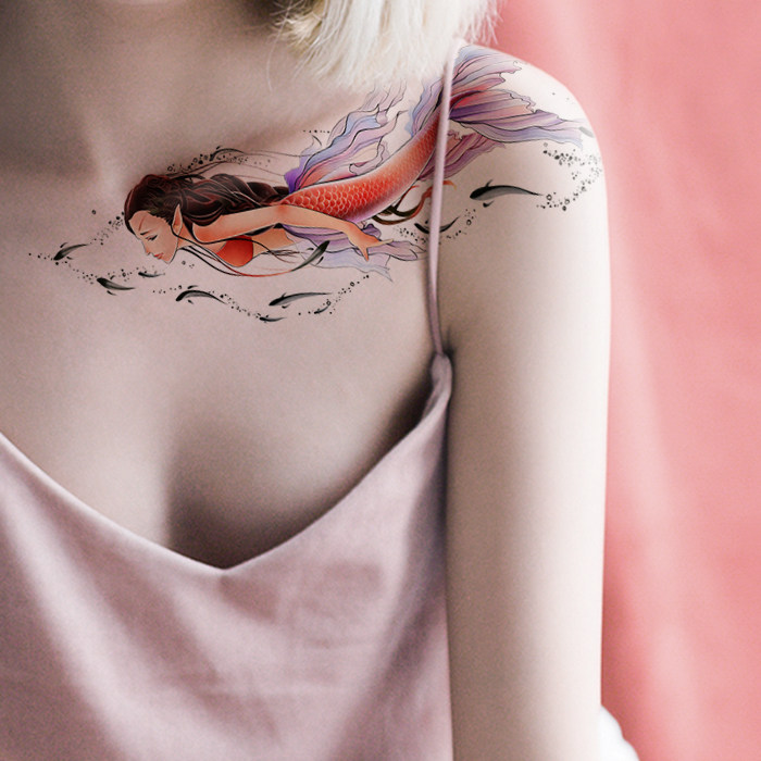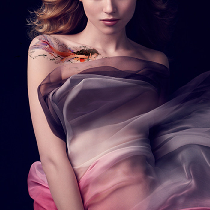 Ink imprint Mermaid collarbone ancient style fairy tattoo stickers waterproof long-lasting ink shoulder cover scar feminine feeling