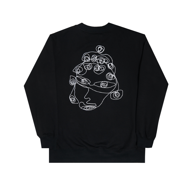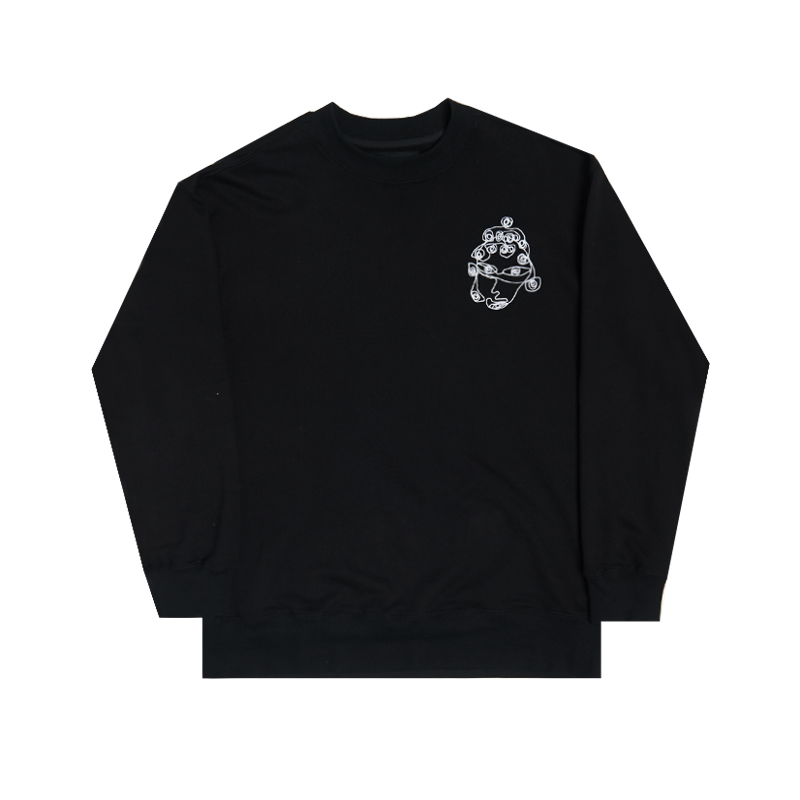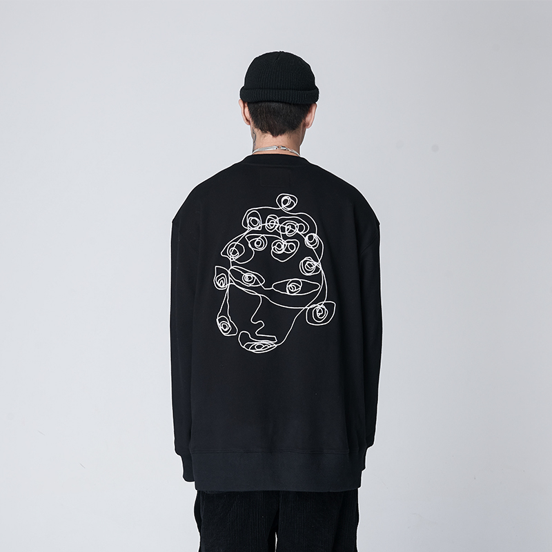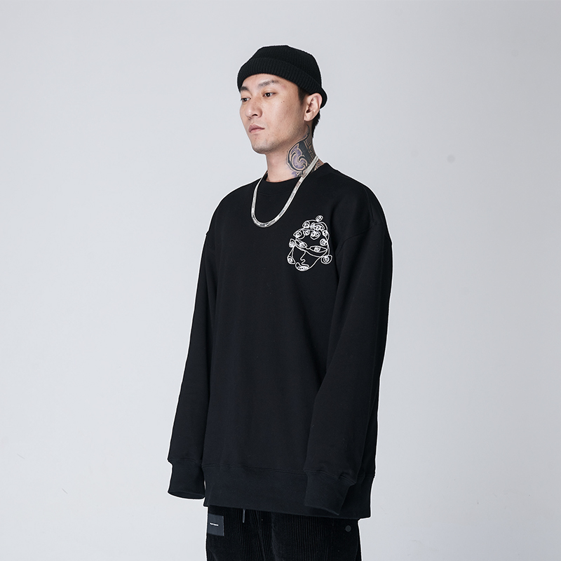The Dirty Collection black loose embroidered pullover top round neck long sleeve thick cotton T