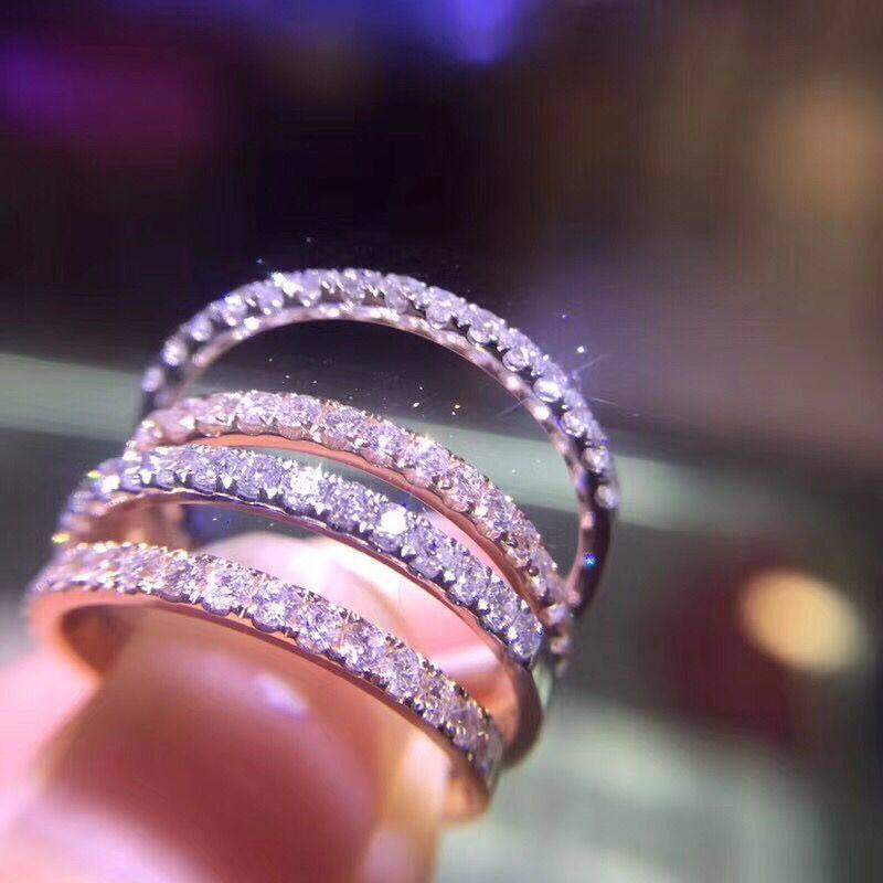 18K gold white yellow rose gold diamond platoon with ring tail ring inlaid and set wedding diamond ring female