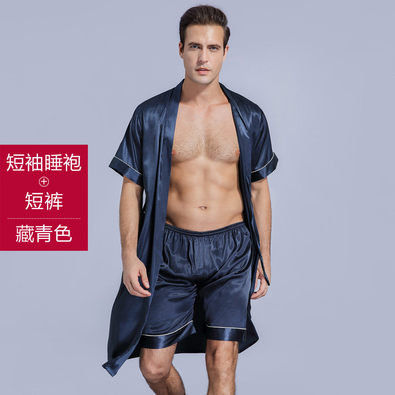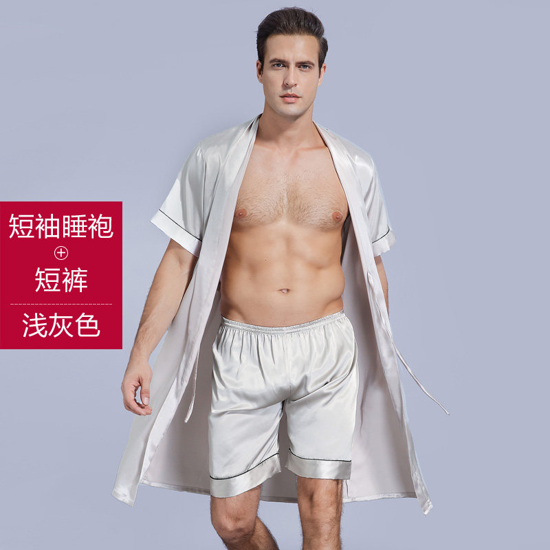 Real Silk Sleeping Robes Men's Spring And Autumn Slim long sleeves shorts bathrobes Summer ice silk long version of men's pyjamas home suits suit