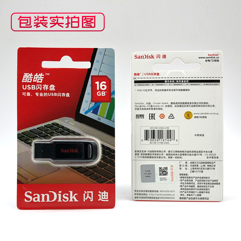 SanDisk SanDisk Cool Hao CZ61 16GB 16G U Disk Classic USB Flash Drive Mini Business Tender USB Flash Drive