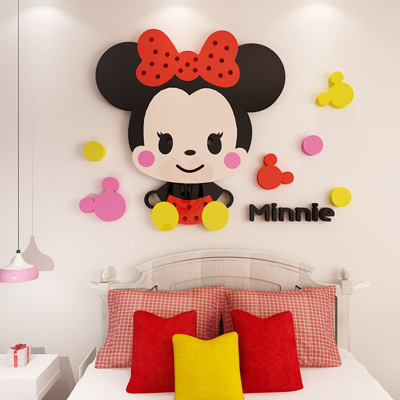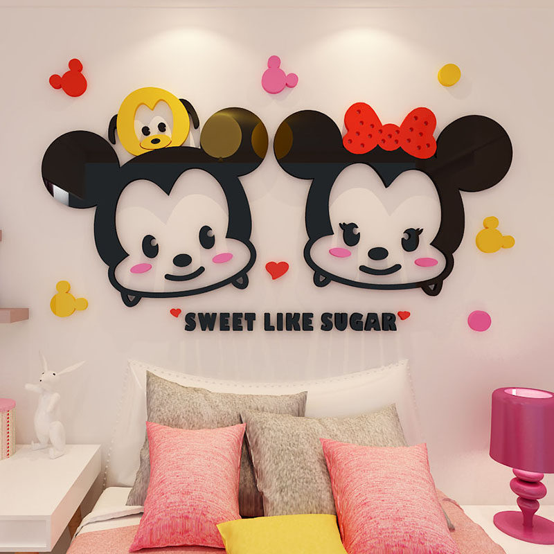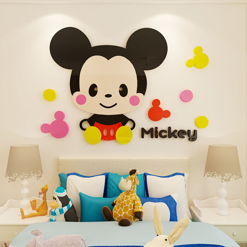 Cartoon Mickey Mouse wall sticker Acrylic Children's room boys and girls creative bedroom wall decoration 3D three-dimensional decorative painting