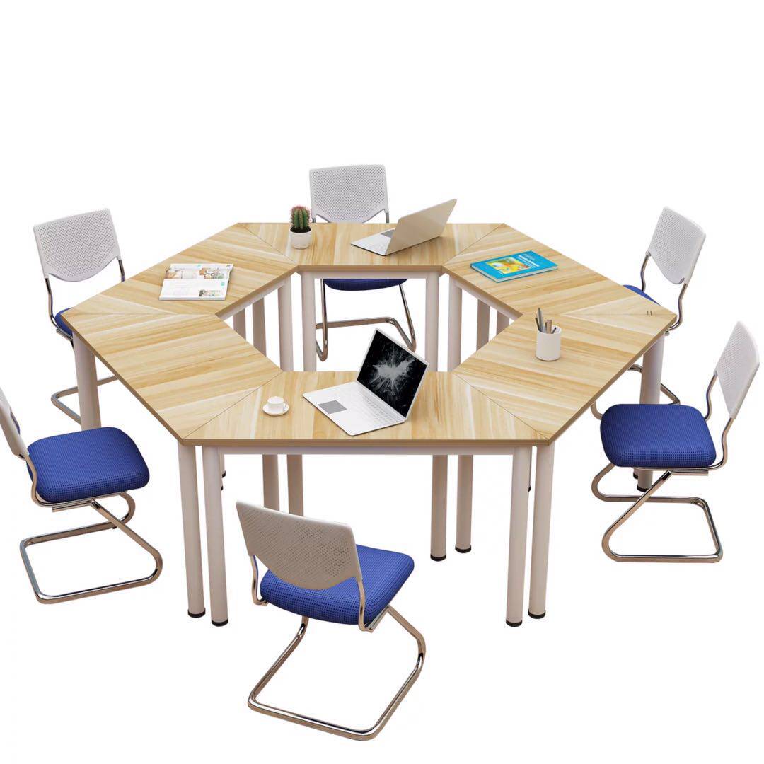 Hexagonal color desks and chairs primary school students group tutoring training desks art classroom desks and chairs splicing trapezoidal table
