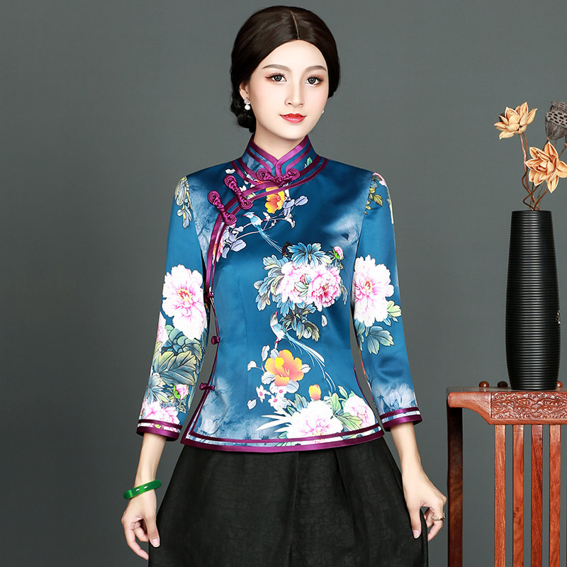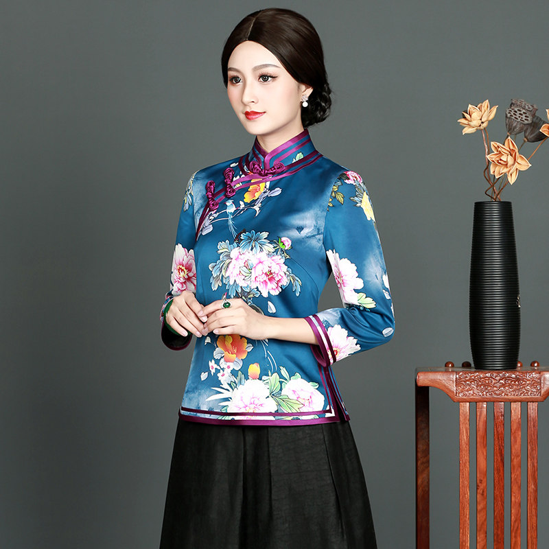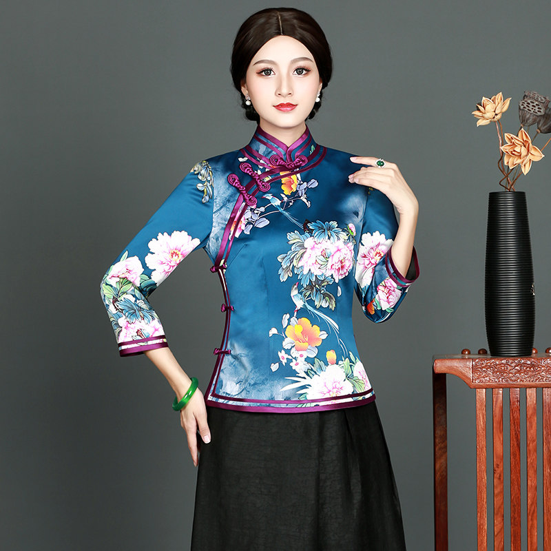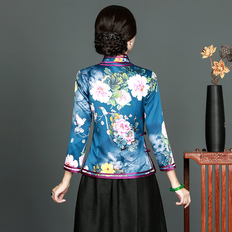 Huachu Classics 2021 Spring Autumn New Improved Fashion Everyday Elegant Mother Chinese Retro Qipao Blouse Blouse