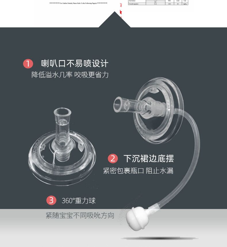 Wide mouth straight drinking straw with new Anyi smooth and wide mouth PA plastic milk bottle soft-billed water glass gravity ball