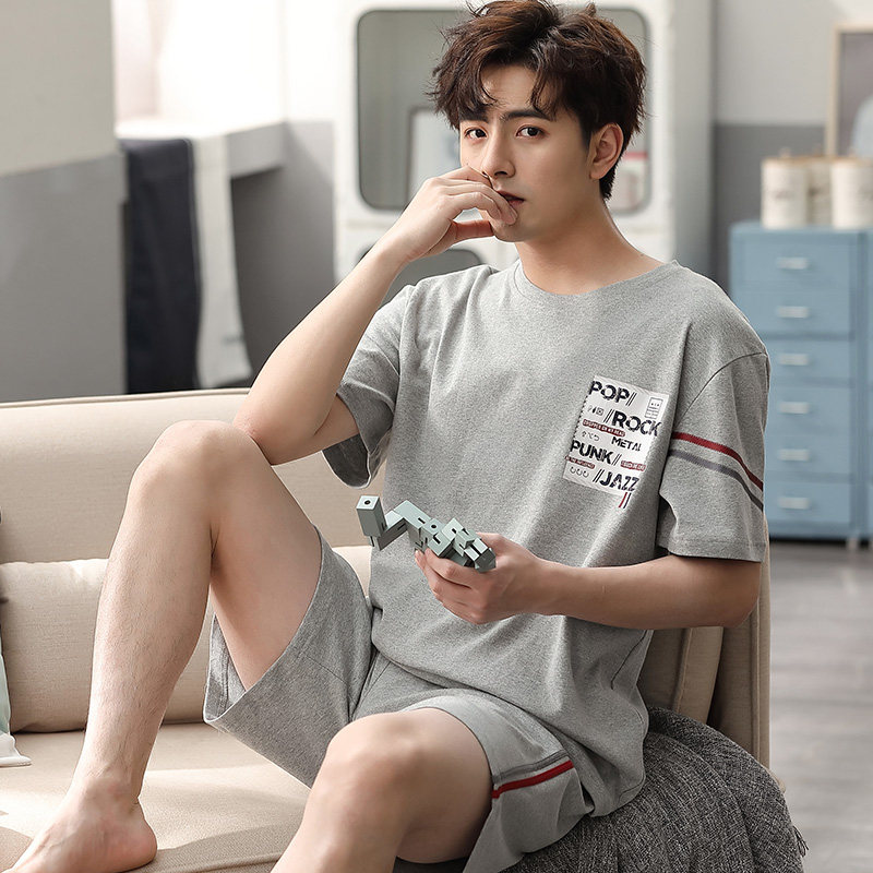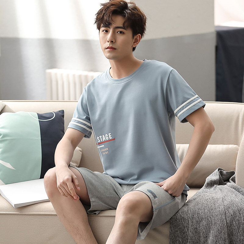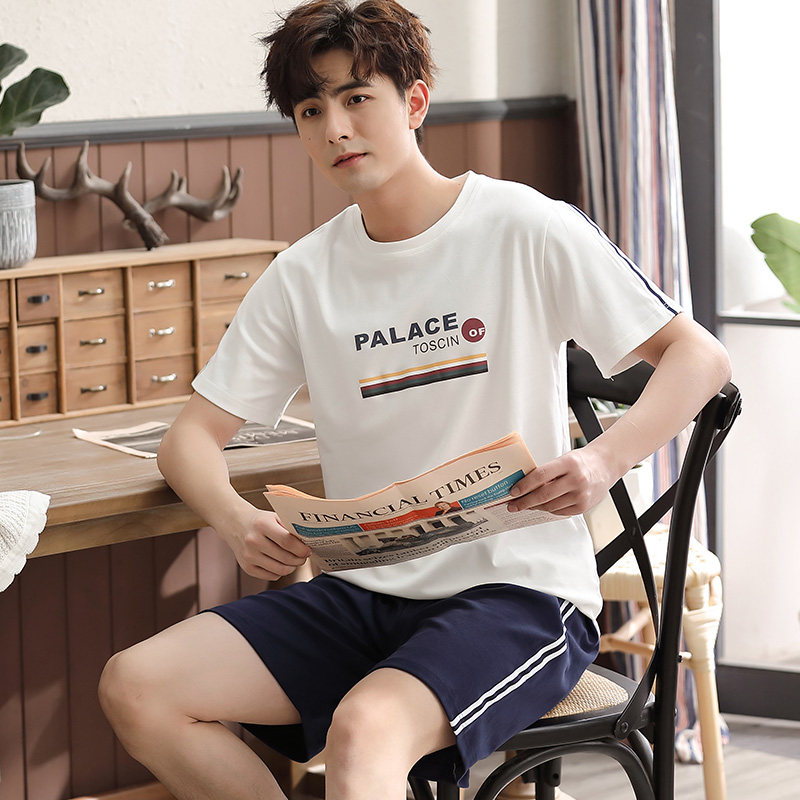 Pure cotton sleepwear male summer thin short sleeves shorts Summer Youth Korean version Men's all-cotton home Clothing Two Style Suits