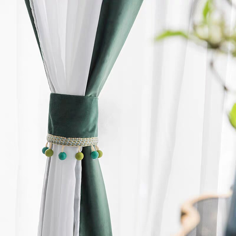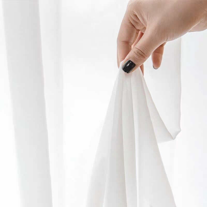 Monica soft Nordic modern plain solid color flannel trim white yarn chiffon balcony living room curtain window