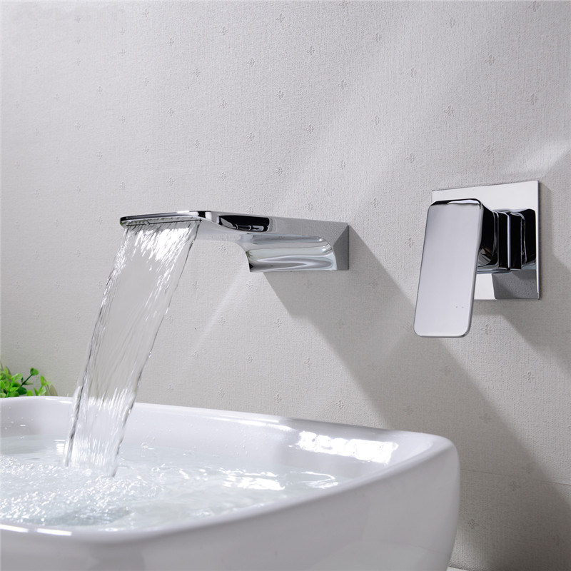 Simple in-wall hot and cold waterfall outlet concealed washbasin basin hand basin full copper tap