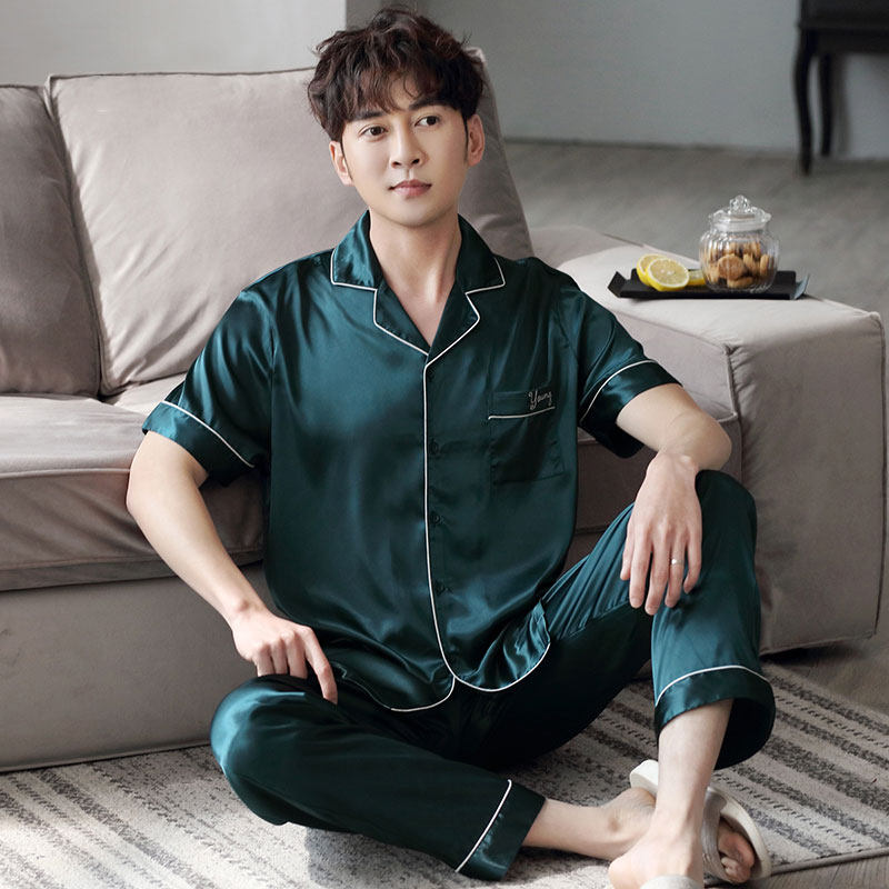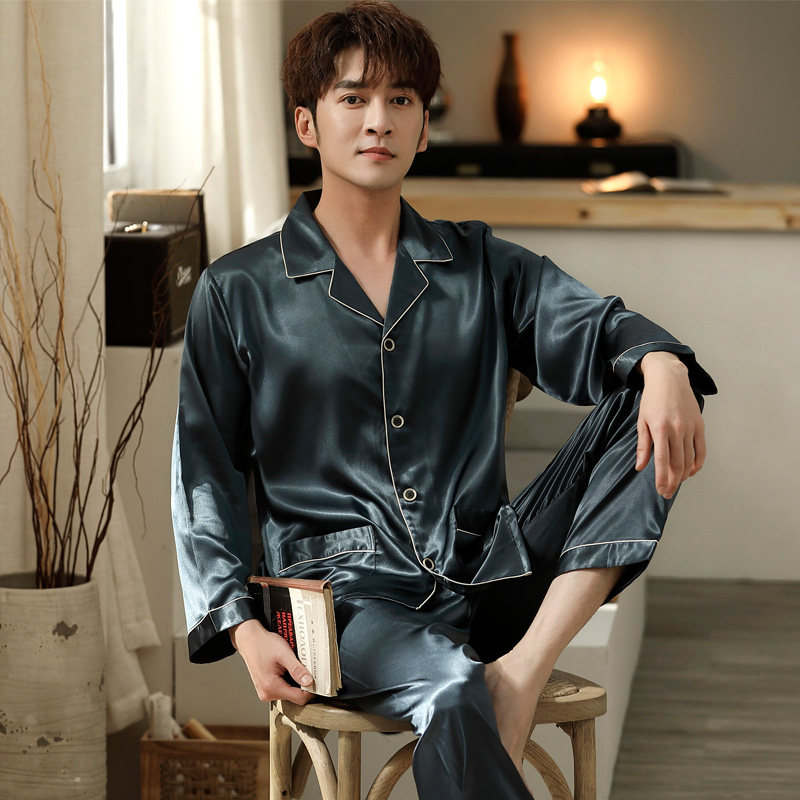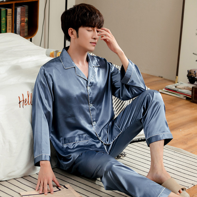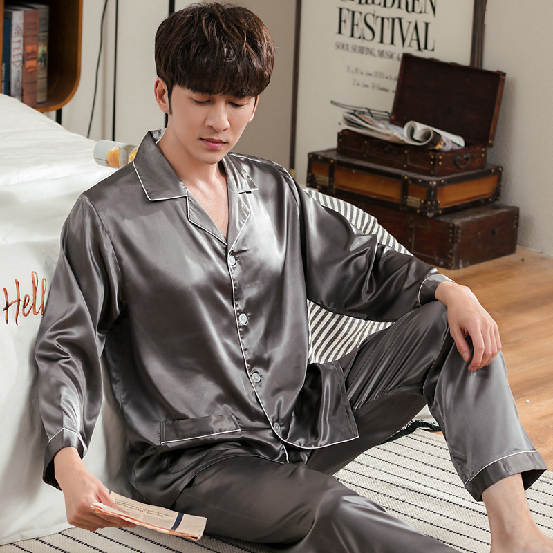 Ice Silk Sleepwear Men's Summer Short Sleeve Men Summer Thin Genuine Silk Spring Autumn Long Sleeve College Student Home Suit Suit