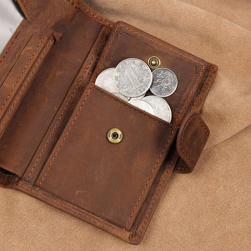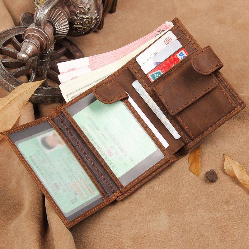 Crazy Horse leather handmade leather wallet men's retro large capacity anti-RFID theft brush wallet Simple multi-card wallet