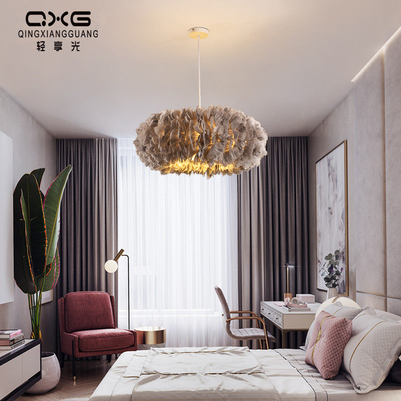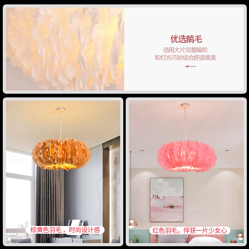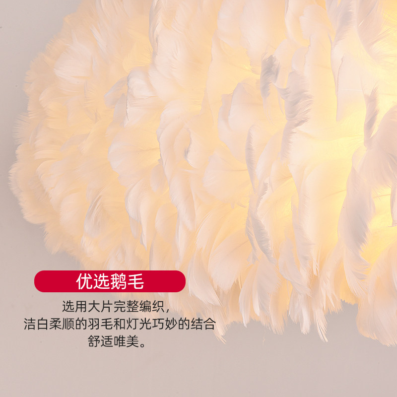 Nordic Bedroom Feather Pendant Lamp Cozy Romantic ins Teenage Girl Children Room Bed Headlights Personality Creative Online Red Lights-Taobao