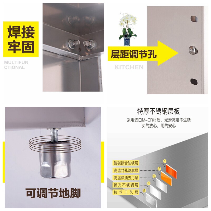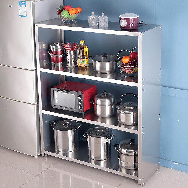 Kitchen three-layer stainless steel shelf side sealing plate landing multi-layer household microwave oven storage frame