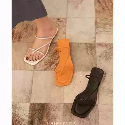 2021 summer New Square head low heel Roman word with set toes toe clip fashion sandals women thin belt sandals wear