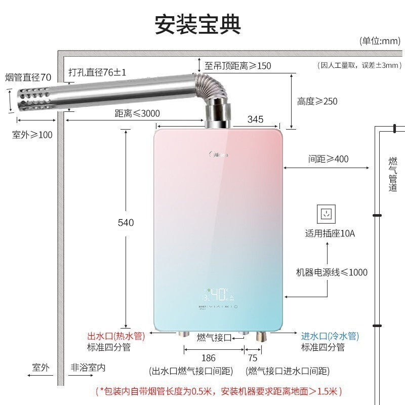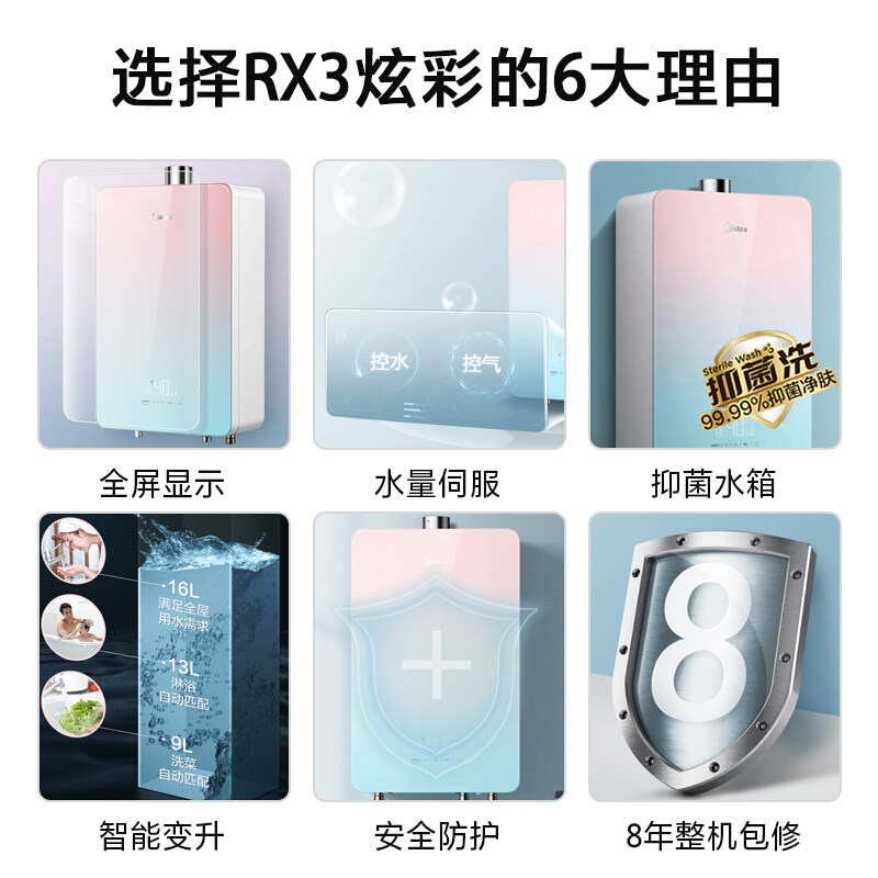 Midea smart home appliance gas water heater RX3 household gas strong row constant temperature instantaneous heat safety protection 16L