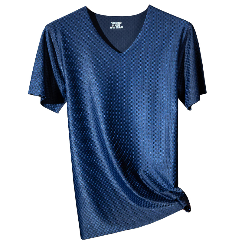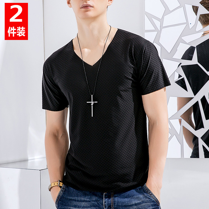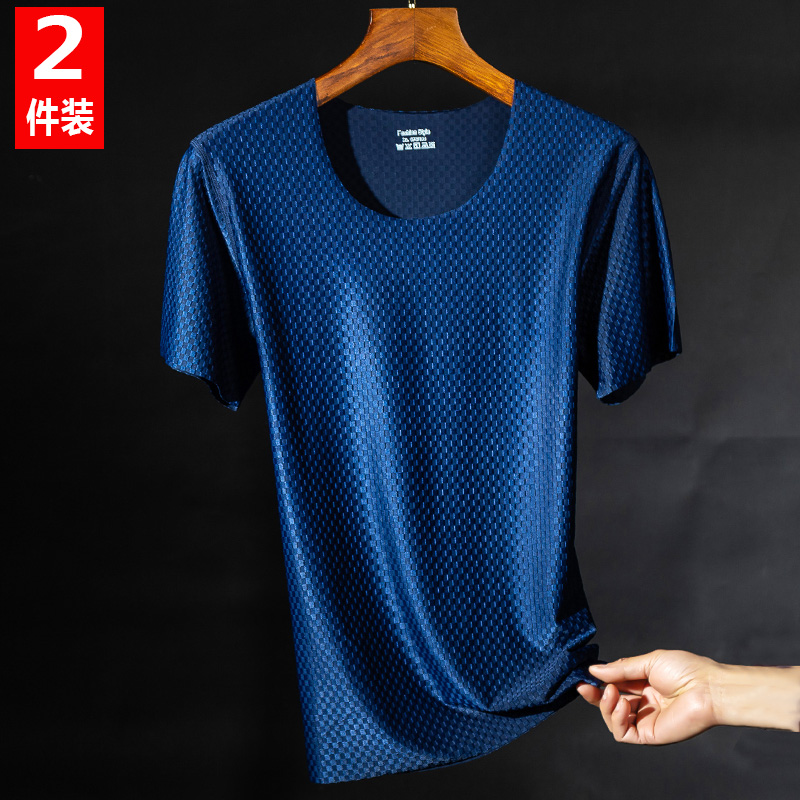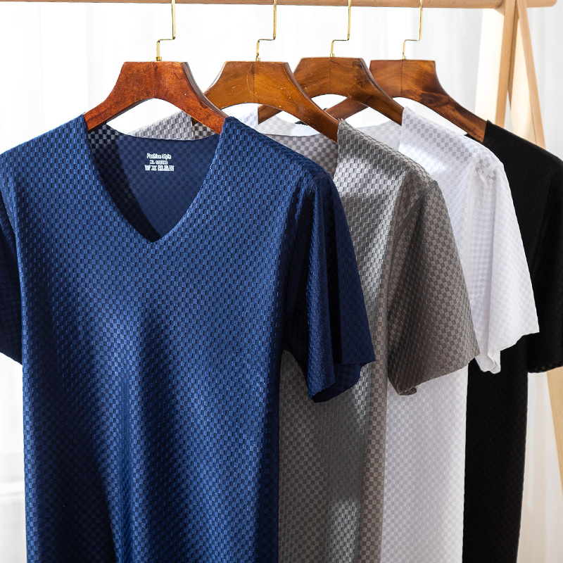 2 pieces of grid ice-wire short sleeve T-shirt male summer thin section speed dry overplay no-mark V-collar half sleeve bottom white T-shirt