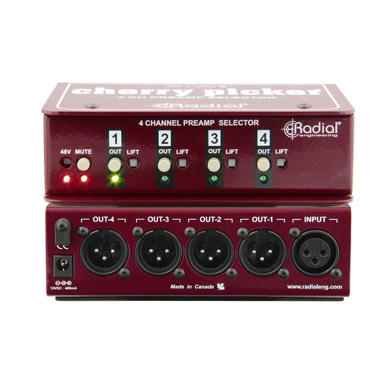 Radial Cherry Picker One-in, four-out microphone preamplifier DI in-line box