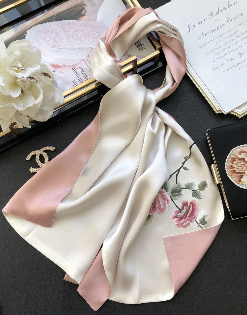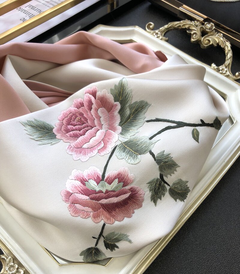 Peony China Wind Su Embroidered Shawl Double Layer Real Silk Scarlet Female Hand Embroidered Mother Mulberry Silk Scarves