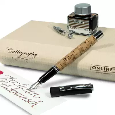 ONLINE European collar imported German wood grain vision cork pen adult writing practice character Iridium pen gift box