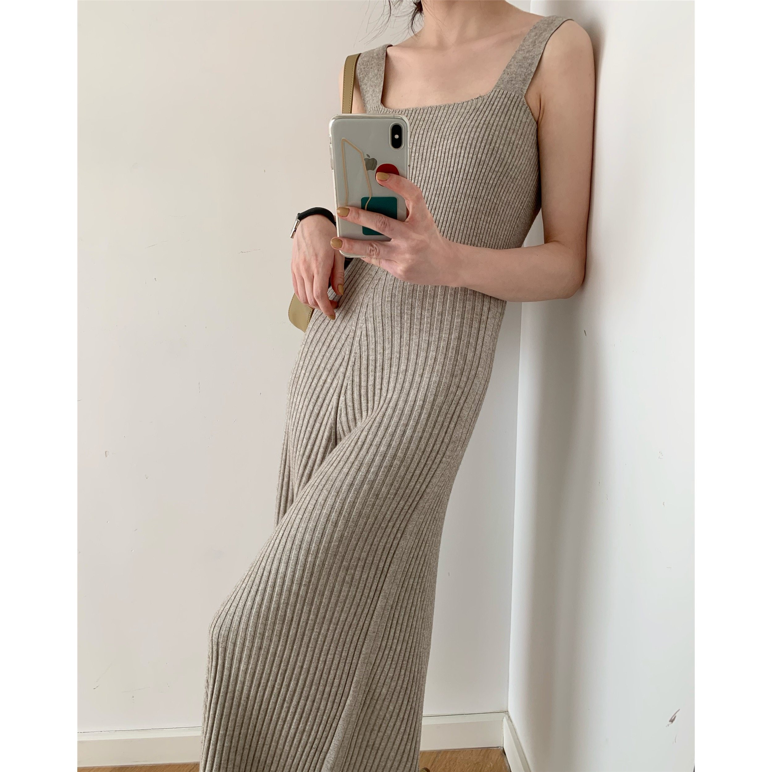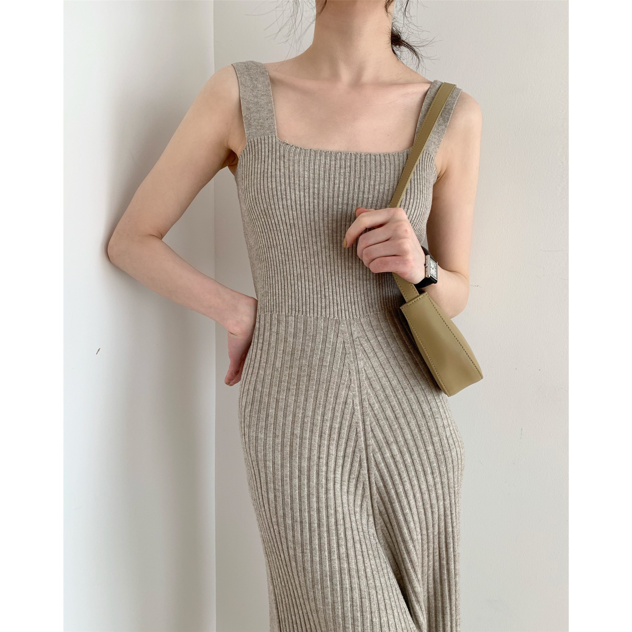 ICTS Time baptism warm and comfortable milk coffee color elegant flat design suspender knitted dress