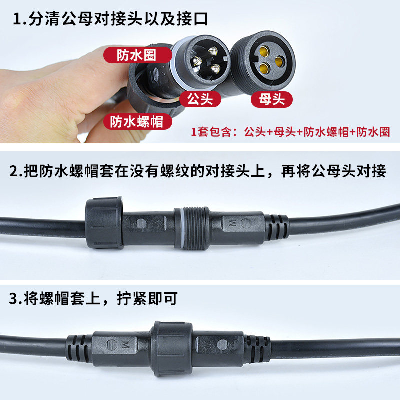 Waterproof Male Butt Plug Aviation Industrial Cable Extension Cord Quick Joint Outdoor LED Line socket 234 Core