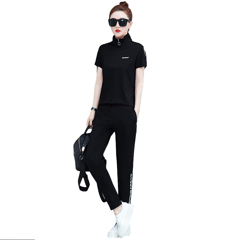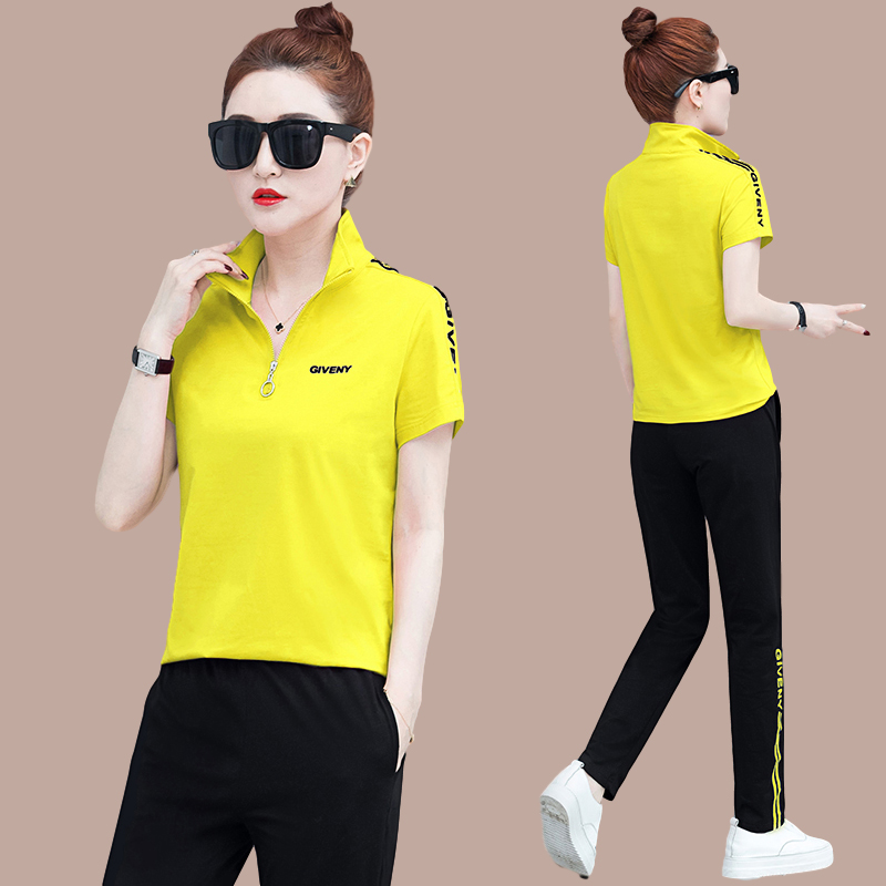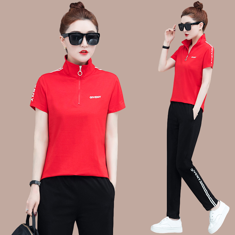 Summer Casual Suit Women 2022 New fashion Loose Collar Slim Pure Cotton Short Sleeve Long Pants Sports Two Suits