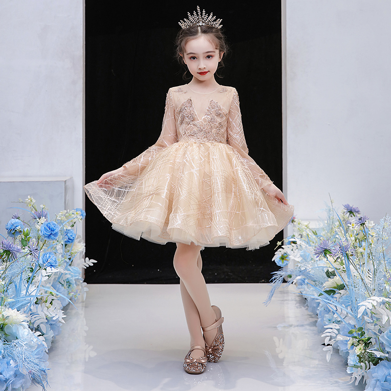 Girl Gown Princess Dress Fluffy Dress Fluffy 2021 New Spring High-end Walking Show Piano For A Banquet Birthday Gown-Taobao