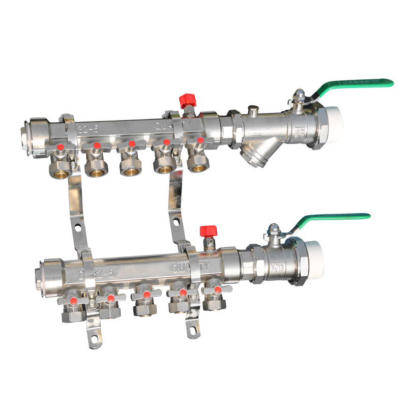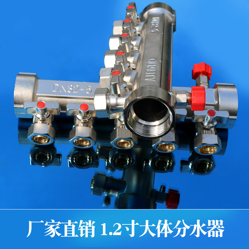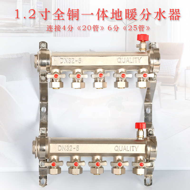 Floor heating water separator 1 2 inch 25 geothermal pipe 4 6 points large flow DN32 all-copper thickened one-piece household valve