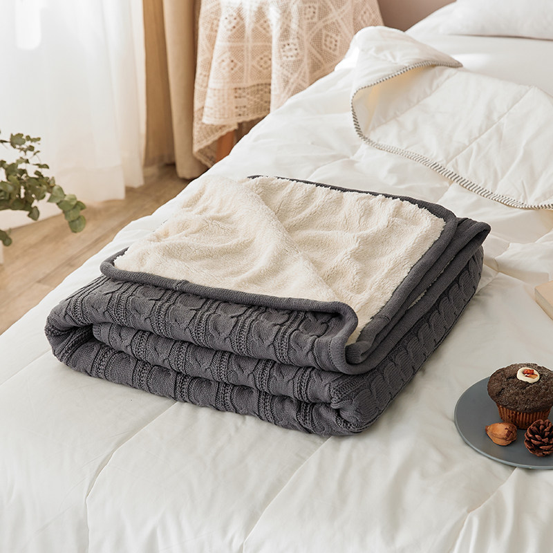 Pure cotton knitted blanket quilt thickened single double-sided lamb velvet air-conditioning blanket office nap composite blanket