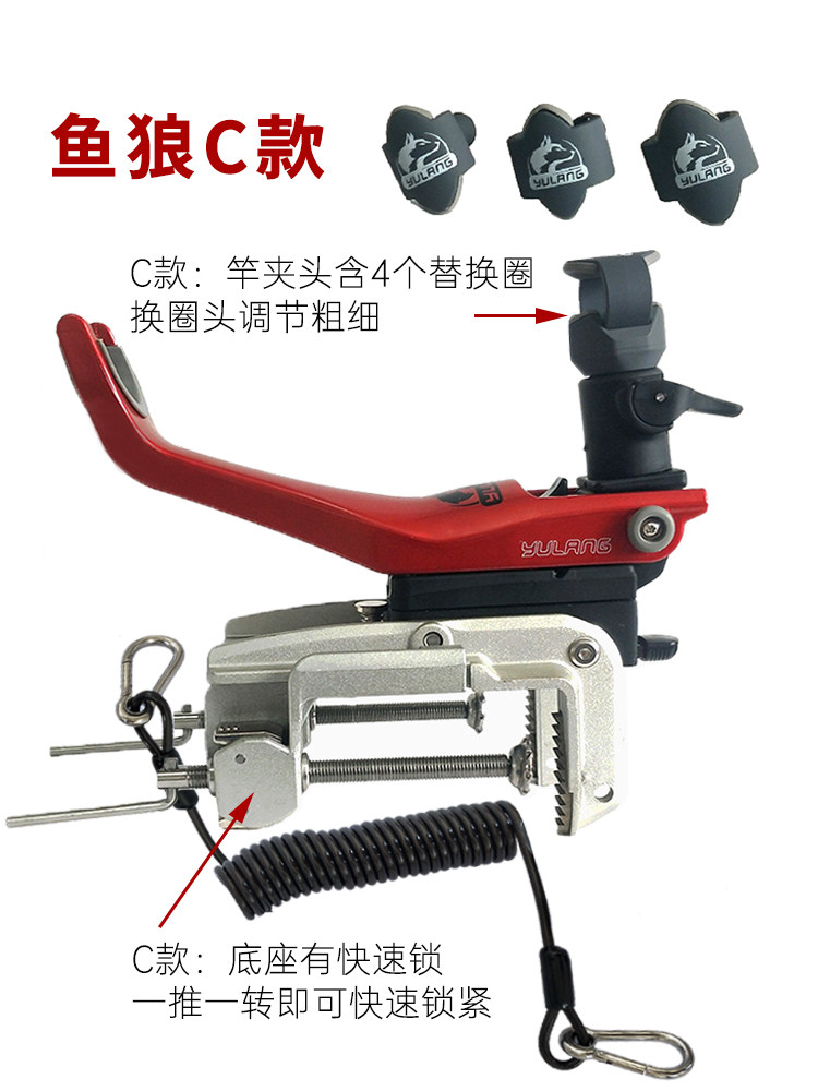Fish Wolf A Complete Set (including lost rope) Fish Wolf B Complete Set (including lost rope) Kaisi C Complete Set (including lost rope) Fish Wolf Upper Seat (including single clamp) Kaisi Upper Seat (including one set of clamp) Fish Wolf Base (one push locking) Stainless Steel Base Single clamp 1 set clamp