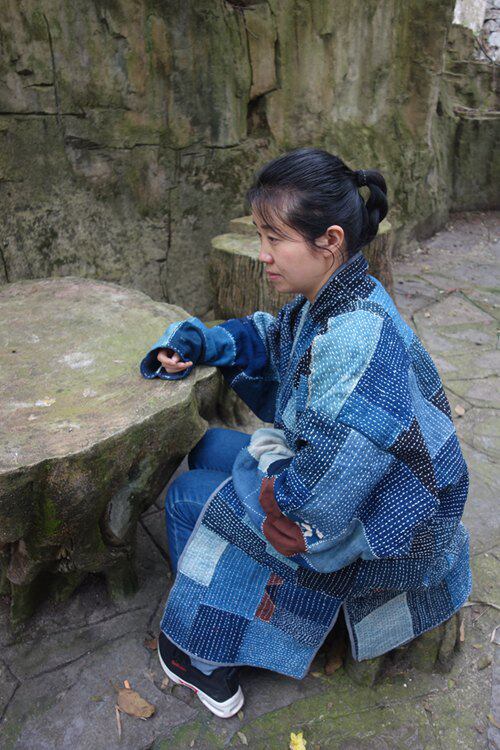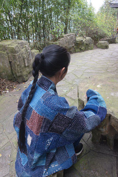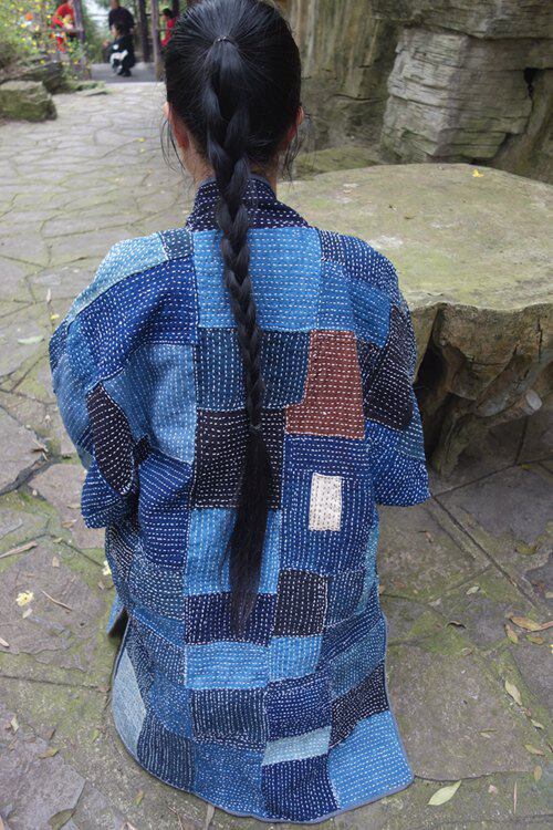 Home Sonic Penthouse for the Cognitive Hand Weave Old Cotton Fabric Blue Indigo Hand Sewn Chest Circumference 116cm High 91cm c-363