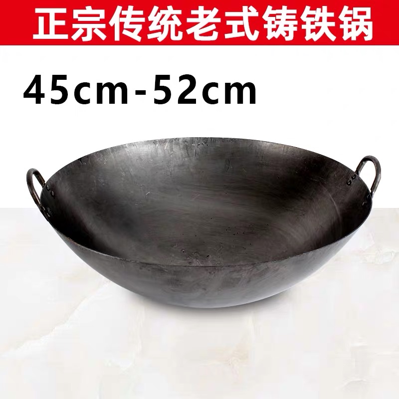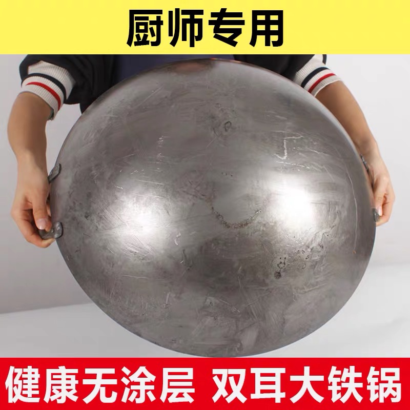Double ear cooked iron frying pan commercial 4 feet 5 deep thickened uncoated chef special frying pan canteen large frying pan