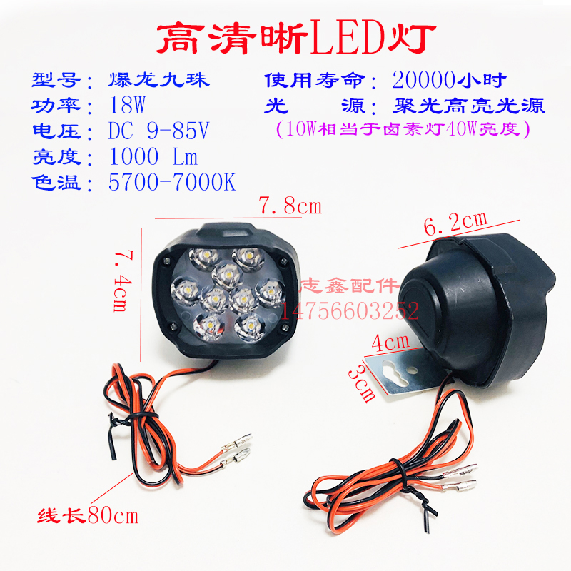 Industrial Kilns Skateboard Lithium Electric Three Four Wheels Bike Accessories 3648v Universal external LED Bright Spotlight Front Headlamps