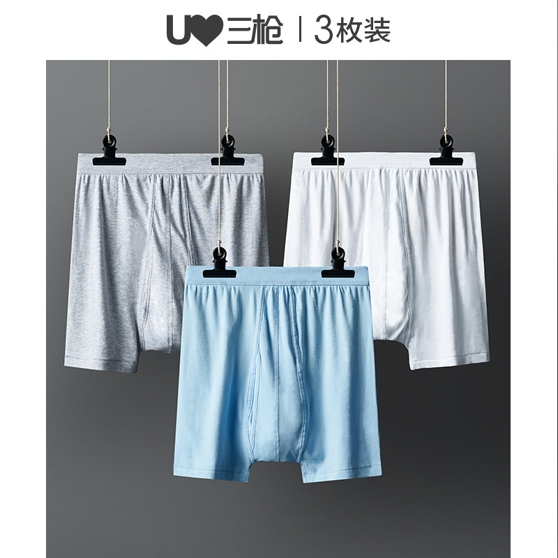 3 Packs] Three Guns Underpants Cotton Rib Men's Underpants Large Size Cotton Boxers Men's High Waist Boxers