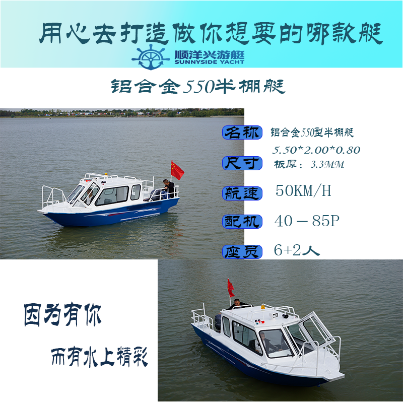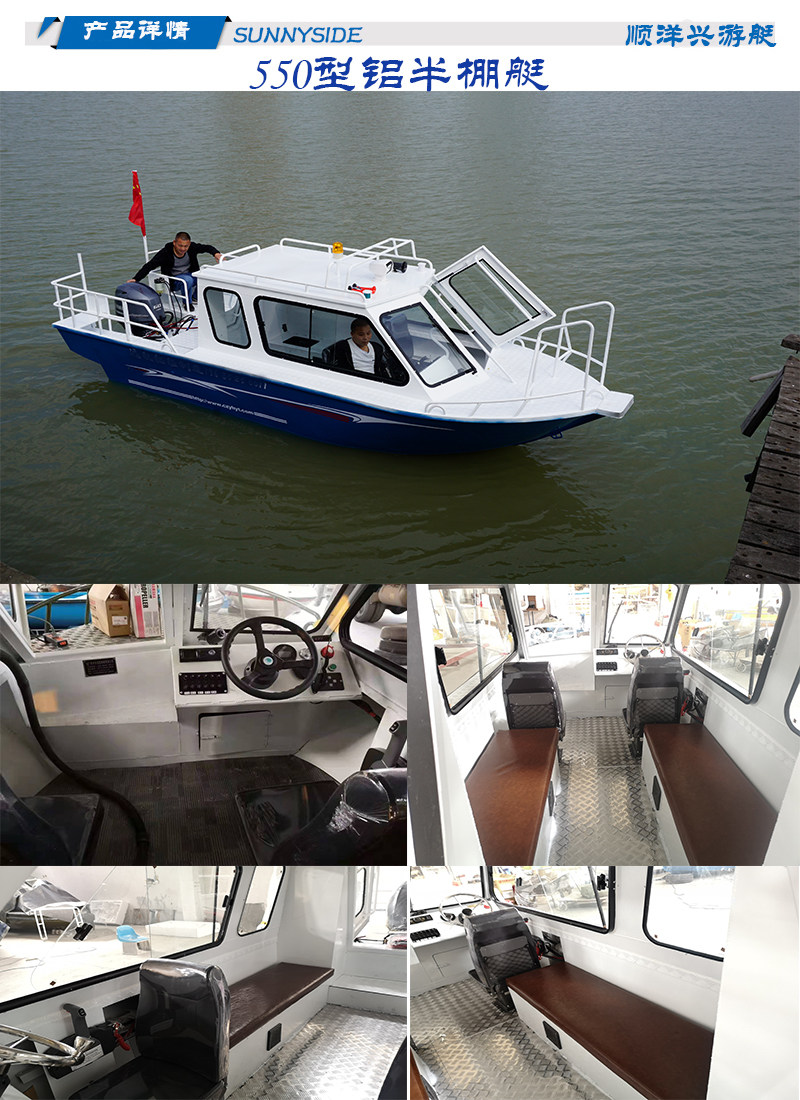 Shunyangxing Yacht 550 half-shed aluminum boat aluminum alloy speedboat fishing boat patrol boat fishery administration boat assault boat