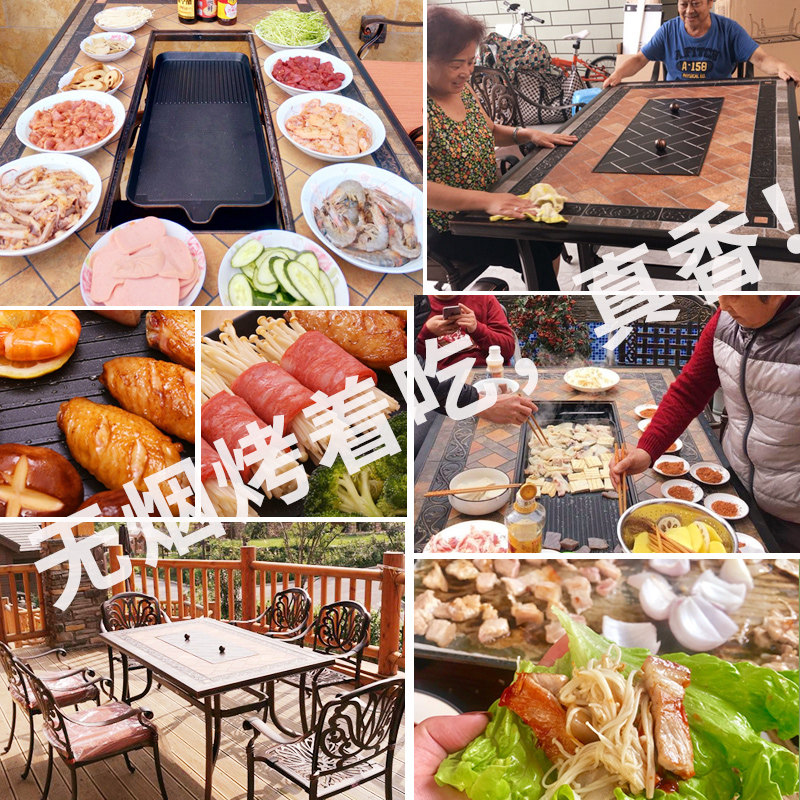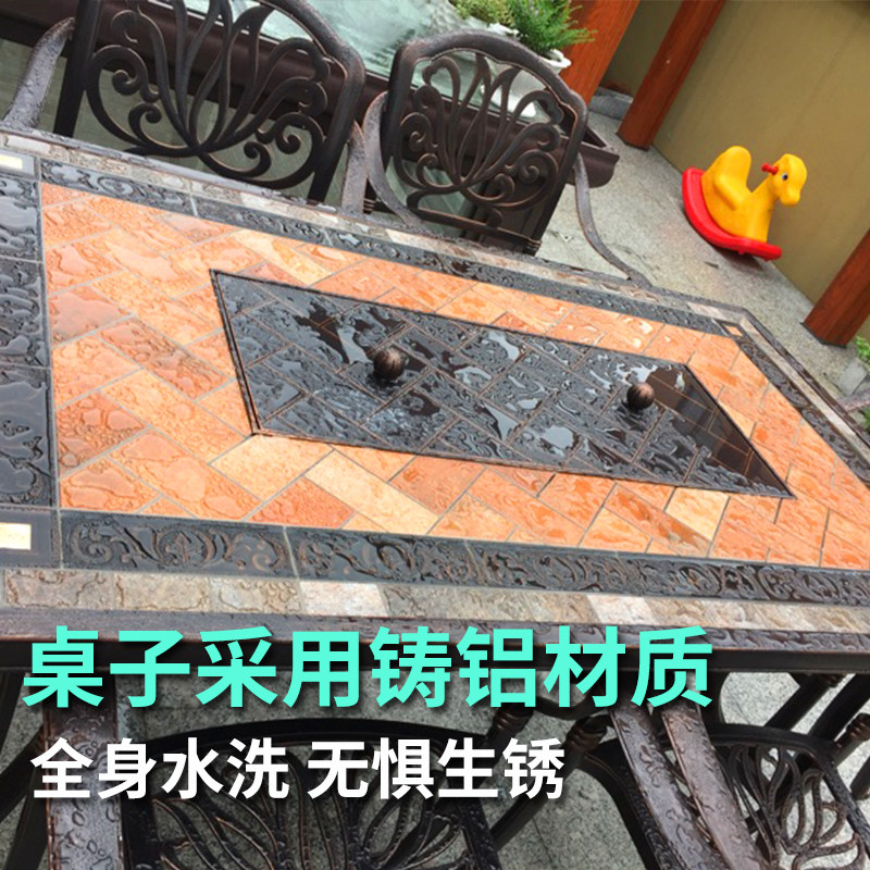 Outdoor courtyard barbecue table and chairs carbon electric dual-use leisure long table open-air European villa garden cast aluminum table and chair home