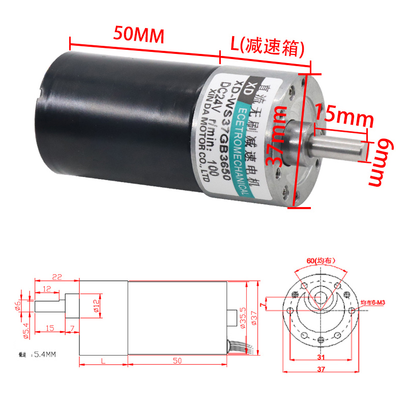 12V 12V 24V DC brushless reduction motor 37 brushless motor small motor positive reversal micro slow motor