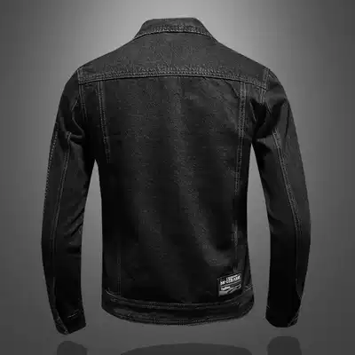 2021 spring and autumn Europe and America heavy industry hole patch patch denim coat lapel wash jacket men casual denim coat