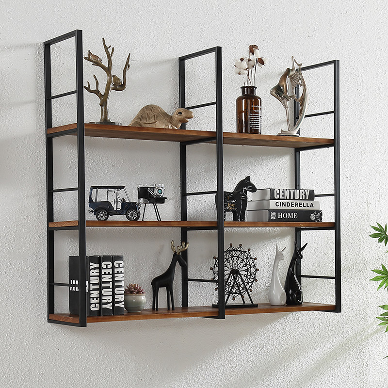 Solid Wood Wall Shelf Living Room Iron Art Bookshelves Wall-mounted Shelve Shelf Bedroom Wall Deco Wall Decorated Wall Cabinet