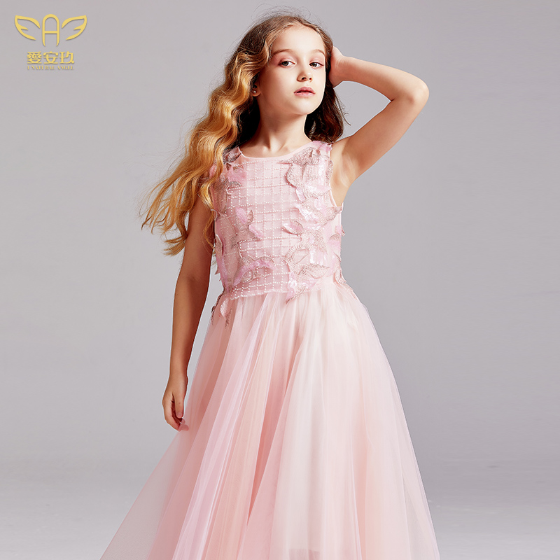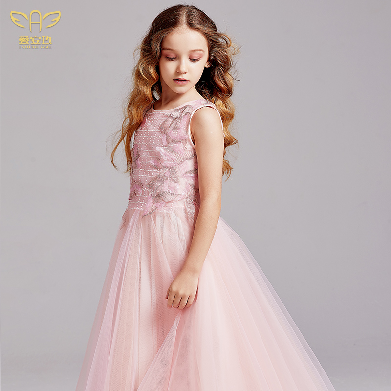 Ai'anjiu children's dress princess skirt girl fluffy gauze child presided over the tail wedding dress birthday high-end flower fairy